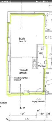 Es handelt sich um eine ca 70 qm große Gewerbefläche, verteilt auf zwei Räume. (Siehe Grundriss)